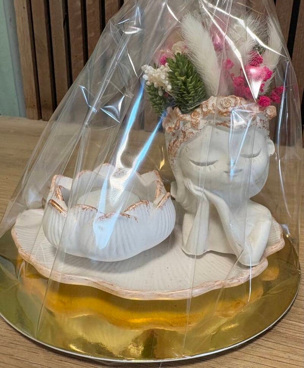 Creëer gezelligheid en warmte in huis met deze unieke theelichthouder in de vorm van een dromerig meisje met bloemenkroon. Het ontwerp straalt rust en elegantie uit, en de bloemvormige houder voor een theelichtje maakt het geheel extra sfeervol.